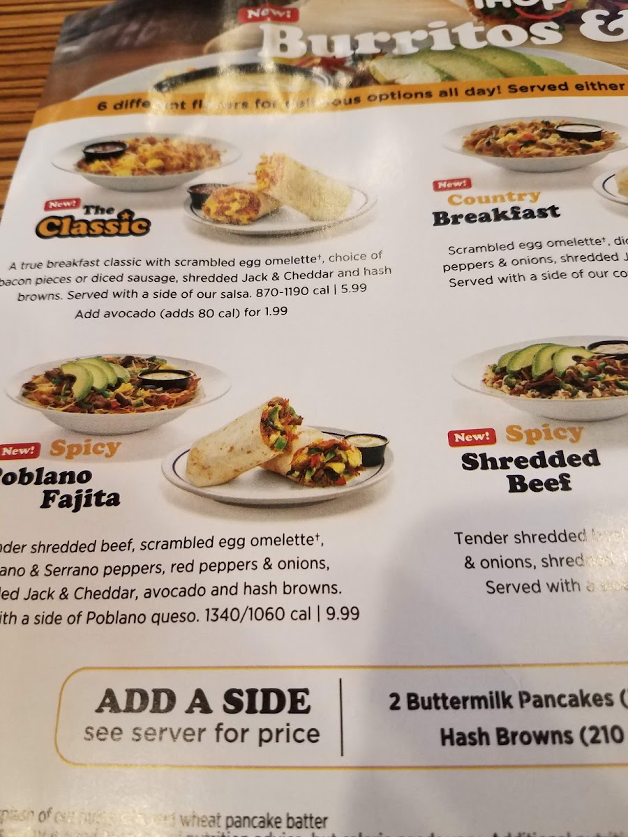 Four servings each of scrambled eggs and golden hash browns, 8 hickory-smoked bacon strips, 8 pork sausage links, and 8 fluffy buttermilk pancakes. Serves 4. Available for IHOP ‘N Go only. Not available for dine-in.